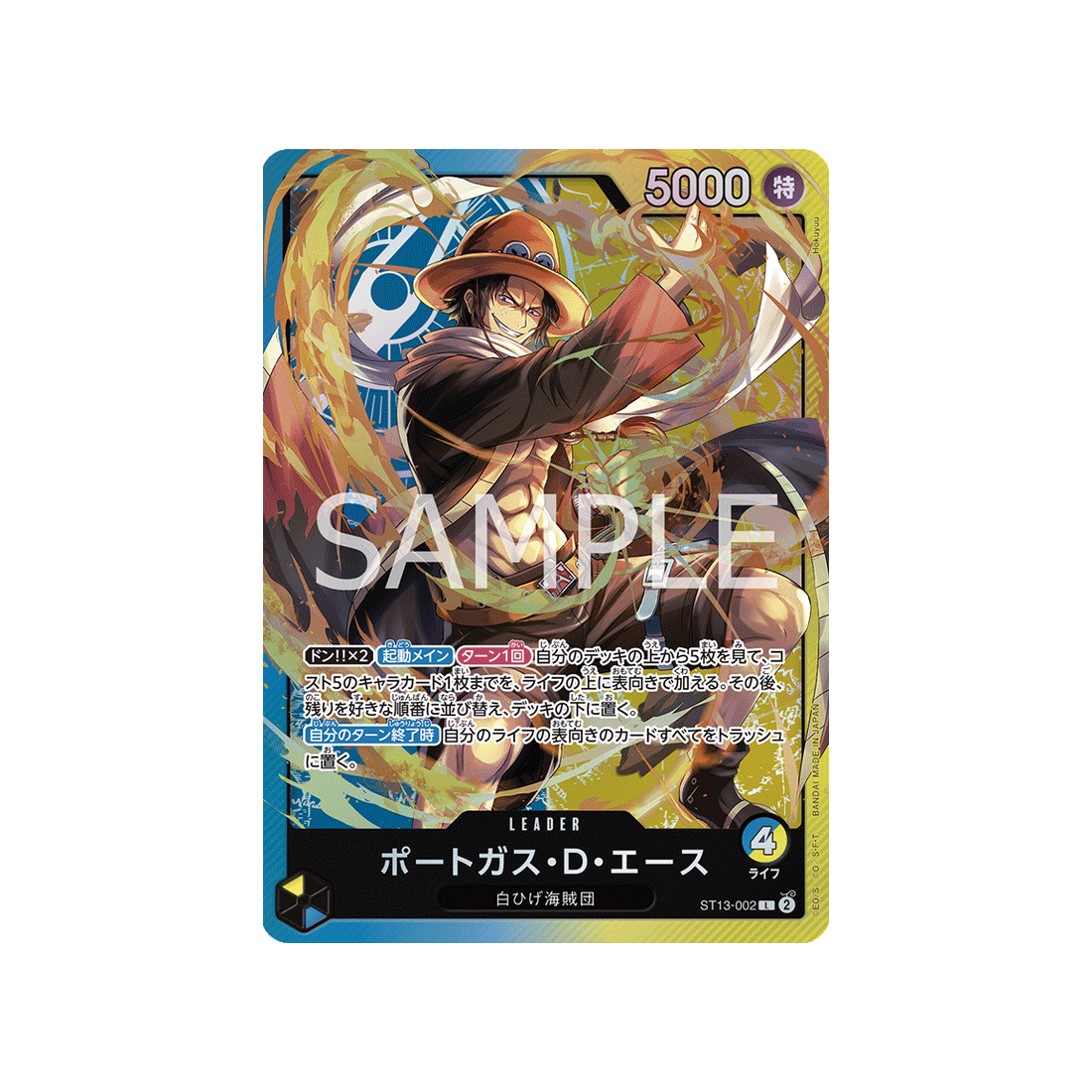 Ajoutez la carte Leader Portgas.D.Ace à votre collection One Piece dès maintenant ! Avec sa rareté L , cette carte de la série ST13 The Three Brothers' Bond est un véritable bijou pour les fans de la famille L'équipage de Barbe Blanche.