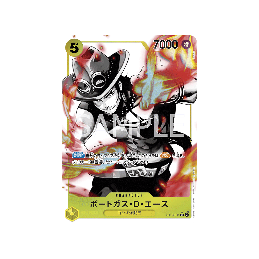 Que tu sois novice ou joueur expérimenté, la carte ST13-011 est un choix fiable. Avec un coût de 5 et une attaque de type Spécial d'une puissance de 7000 points, elle peut s'adapter à toutes les situations. Un incontournable pour tout duelliste One Piece TCG !