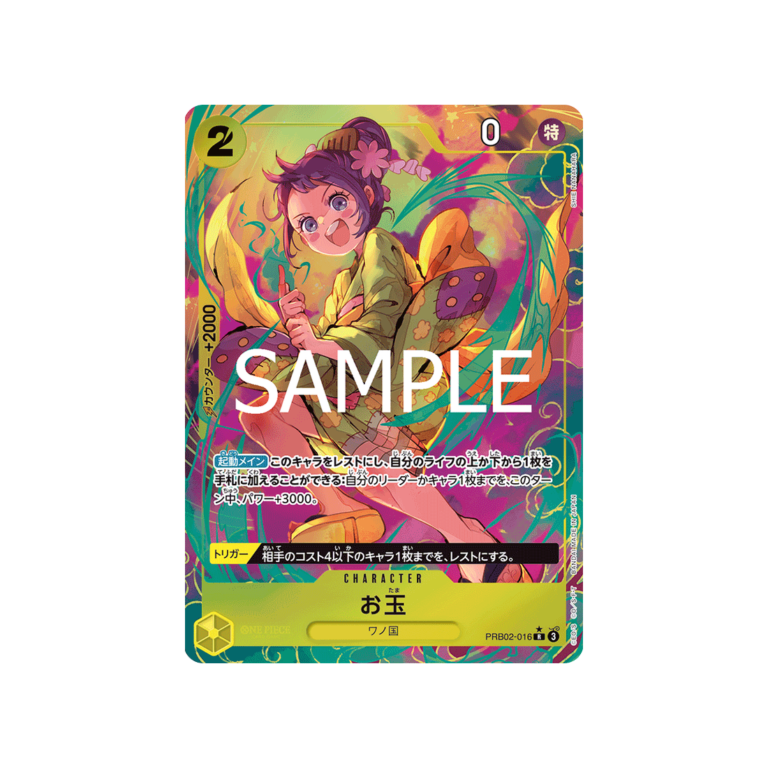Complète ta collection ONE PIECE CARD THE BEST vol.2 tout en rejoignant Pays de Wano avec cette carte Rare Otama numéro PRB02-016 dans sa version Parallèle 1et vis des aventures incroyables en haute mer !