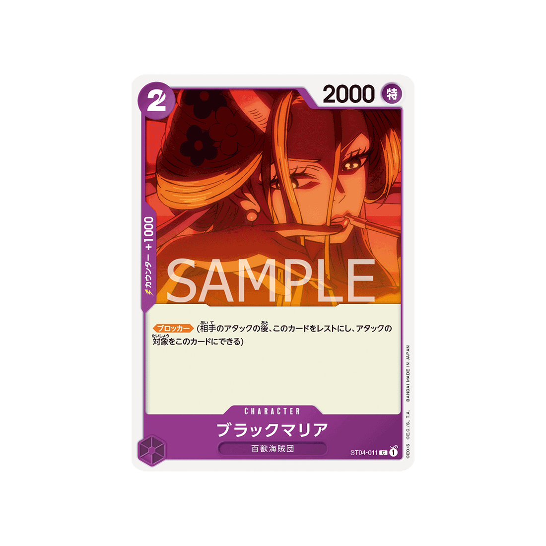 Que tu sois novice ou joueur expérimenté, la carte ST04-011 est un choix fiable. Avec un coût de 2, ainsi qu'une valeur de contre de 1000 et une attaque de type Spécial d'une puissance de 2000 points, elle peut s'adapter à toutes les situations. Un incontournable pour tout duelliste One Piece TCG !