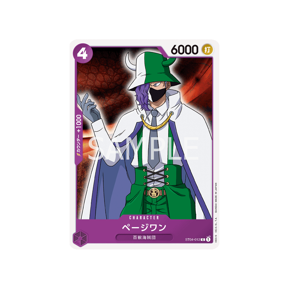Avec un coût de 4 'Don!', une puissance de 6000 points, ainsi qu'une valeur de contre de 1000 et une attaque de type Frappe, la carte Character Page One est un must-have pour tout fan de One Piece qui se respecte.
