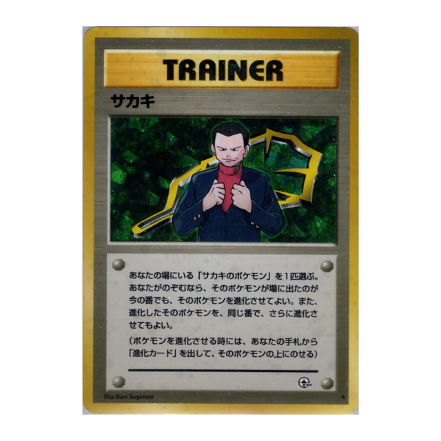 Le grand Giovanni aura bercé (ou terrifié) l'enfance des collectionneurs. Cette carte dresseur Wizard qui nous vient du bloc Gym est un must-have parmi les holographiques.