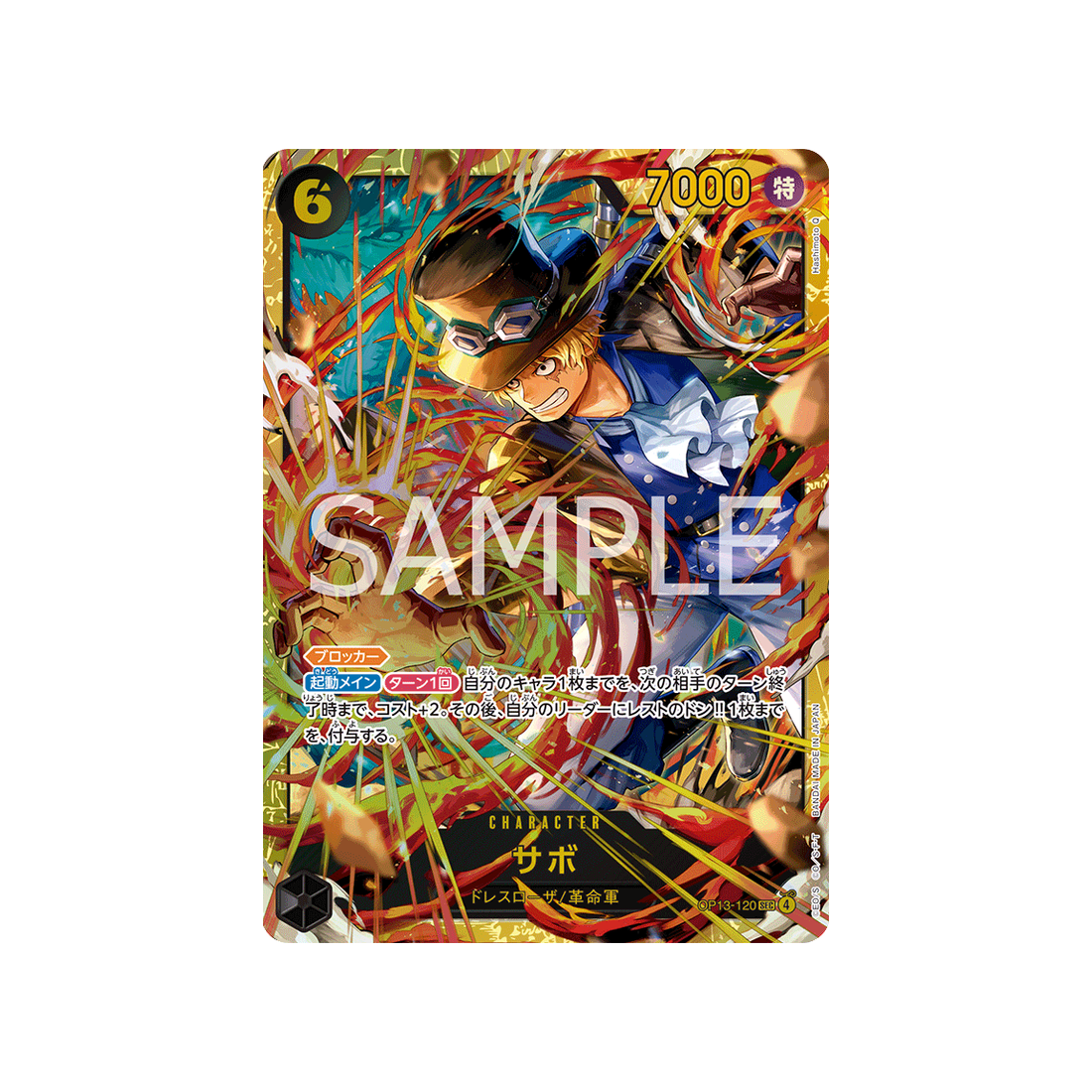 Avec un coût de 6 'Don!', une puissance de 7000 points, ainsi qu'une valeur de contre de - et une attaque de type Spécial, la carte Character Sabo est un must-have pour tout fan de One Piece qui se respecte.