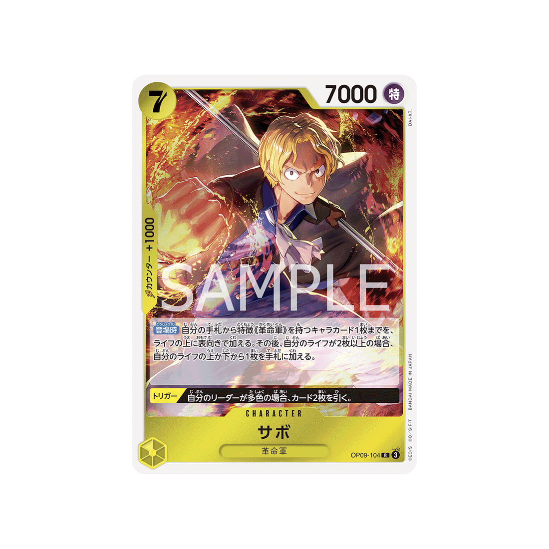 Avec un coût de 7 'Don!', une puissance de 7000 points, ainsi qu'une valeur de contre de 1000 et une attaque de type Spécial, la carte Character Sabo est un must-have pour tout fan de One Piece qui se respecte.