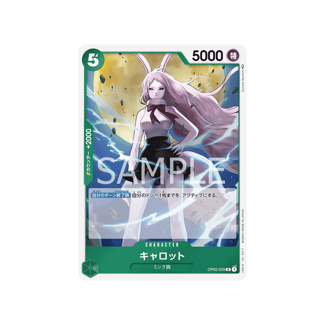 Avec un coût de 5 'Don!', une puissance de 5000 points, ainsi qu'une valeur de contre de 2000 et une attaque de type Spécial, la carte Character Carrot est un must-have pour tout fan de One Piece qui se respecte.