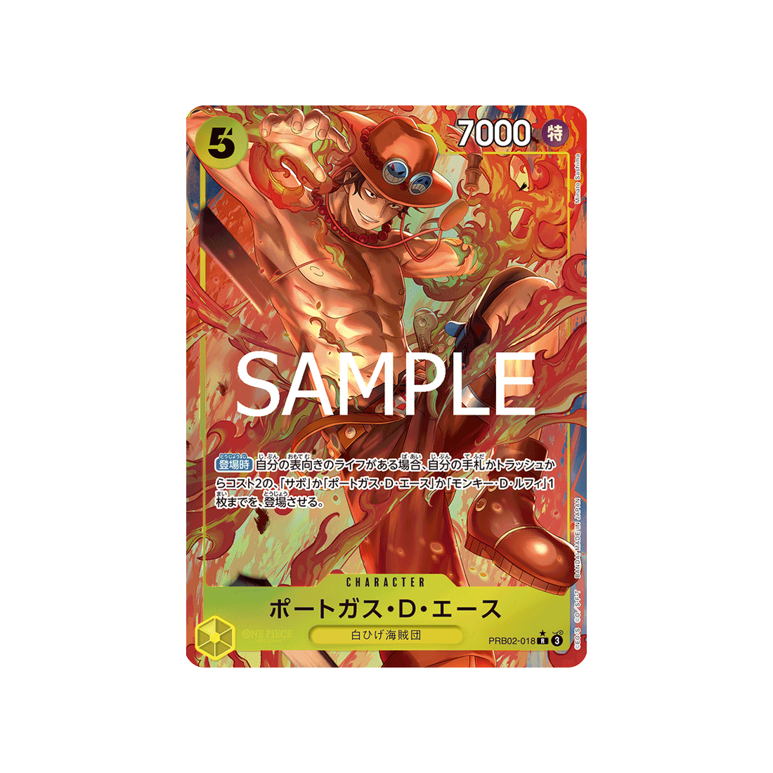 Les cartes de la famille Whitebeard Pirates sont toujours très prisées par les collectionneurs, et la carte Rare Portgas.D.Ace Numéro PRB02-018 de la série ONE PIECE CARD THE BEST vol.2 ne fait pas exception.