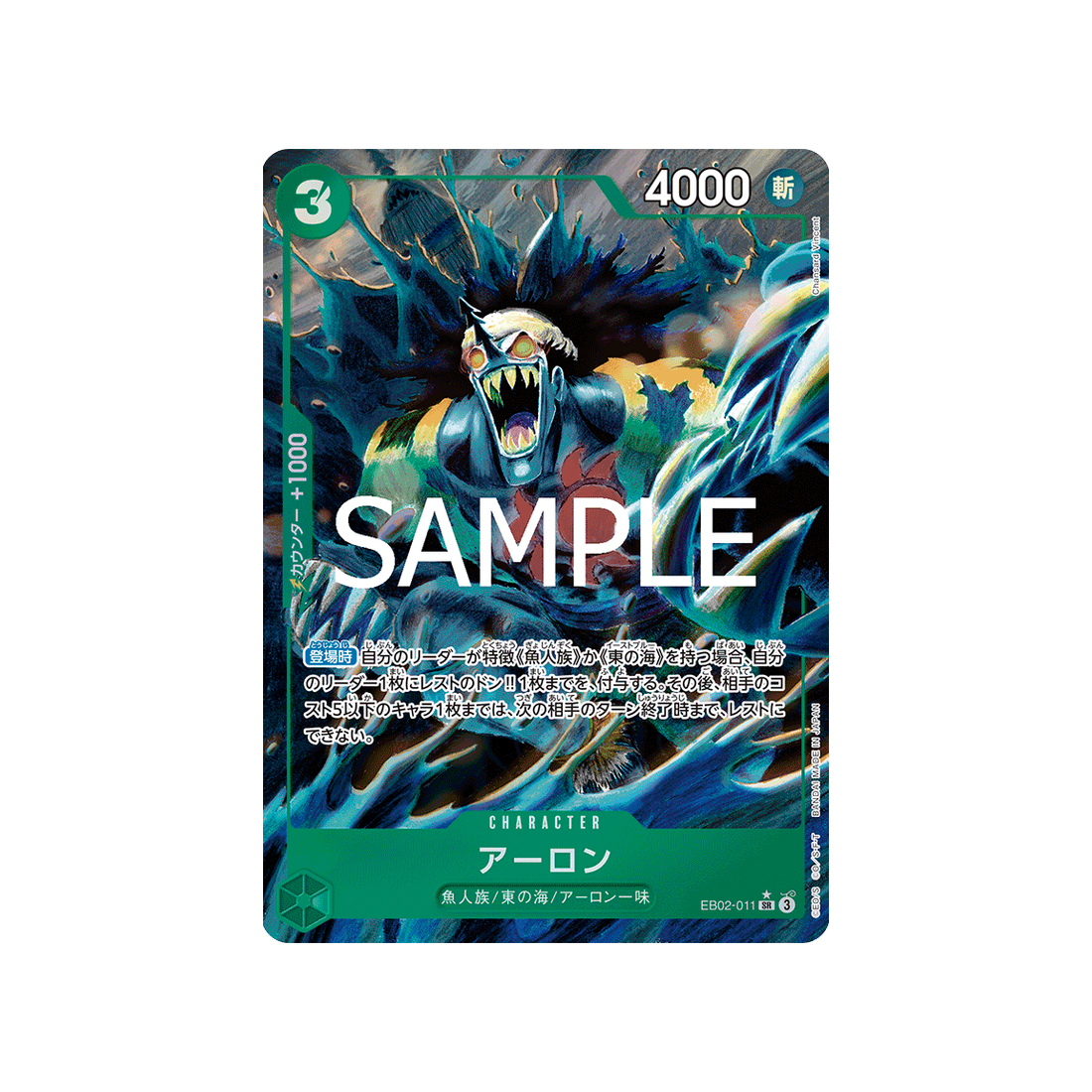Complète ta collection Anime 25th collection tout en rejoignant Homme-Poisson/Mers de l'Est/Equipage d'Aaron avec cette carte Super Rare Arlong numéro EB02-011 dans sa version Parallèle 1et vis des aventures incroyables en haute mer !