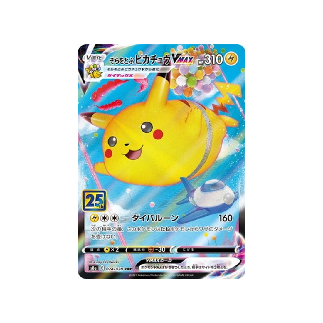 La Carte Numéro 024/028 : Pikachu Volant VMAX de la série S8A 25ème Anniversaire Collection !