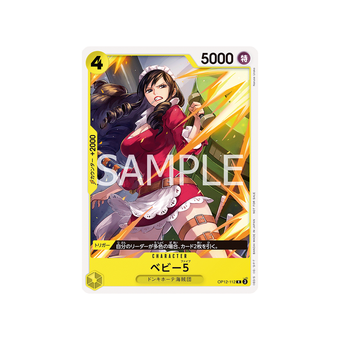 Les cartes de la famille Equipage de Don Quichote sont toujours très prisées par les collectionneurs, et la carte Rare Baby 5 Numéro OP12-112 de la série ne fait pas exception.