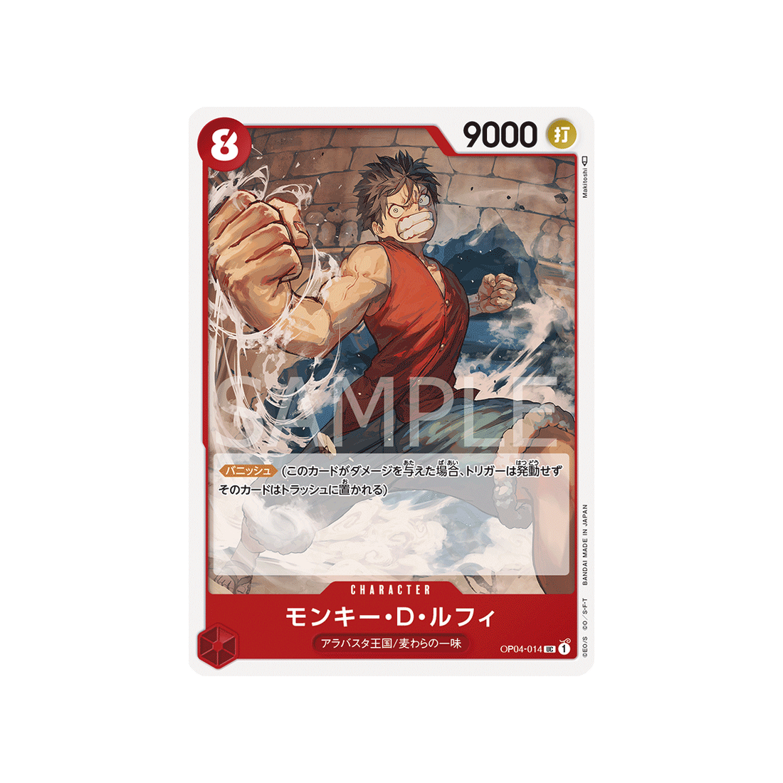 Le Character est une carte indispensable dans tout deck qui se respecte ! Et Monkey.D.Luffy sera ton allié le plus précieux : de couleur Rouge et avec l'attribut Frappe, il fera des ravages via un coût de 8 'Don!' et sa puissance de 9000 points!