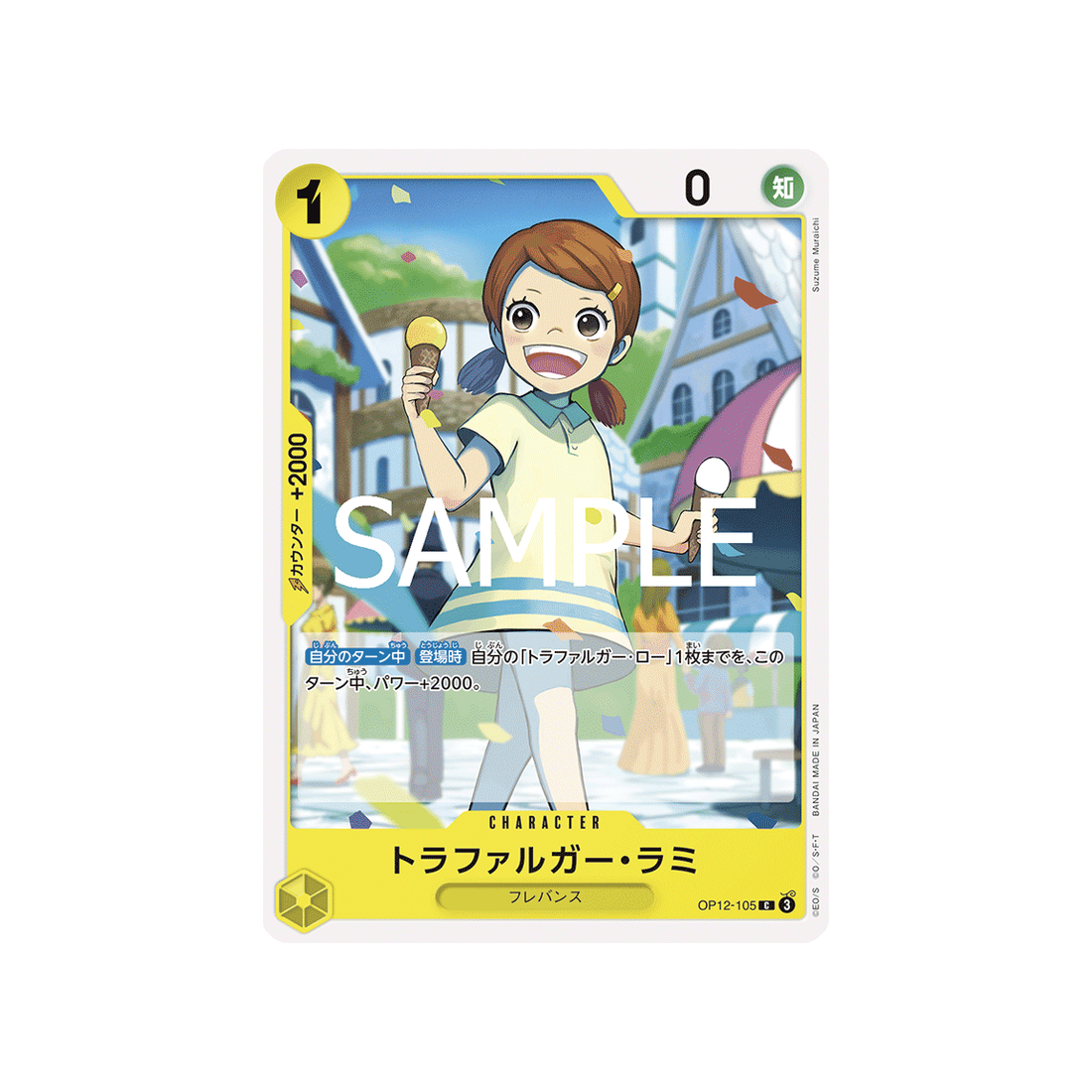 Prépare-toi à affronter tous les défis avec la magnifique carte Character Trafalgar Lammy numéro OP12-105 de la série Legacy of the Master, une carte Commune et puissante qui fera la fierté de ta collection.