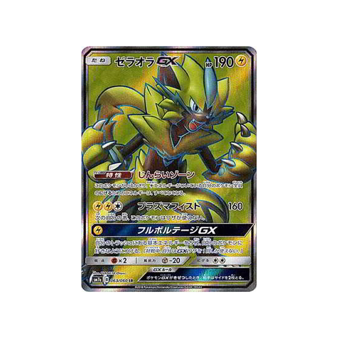 La Carte Numéro 063/060 : Zeraora GX de la série SM7A Étincelle d'Orage !