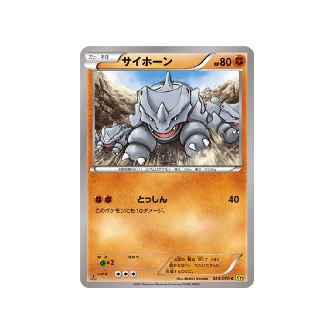 La Carte Numéro 029/070 : Rhinocorne de la série XY5G Volcan Gaia !