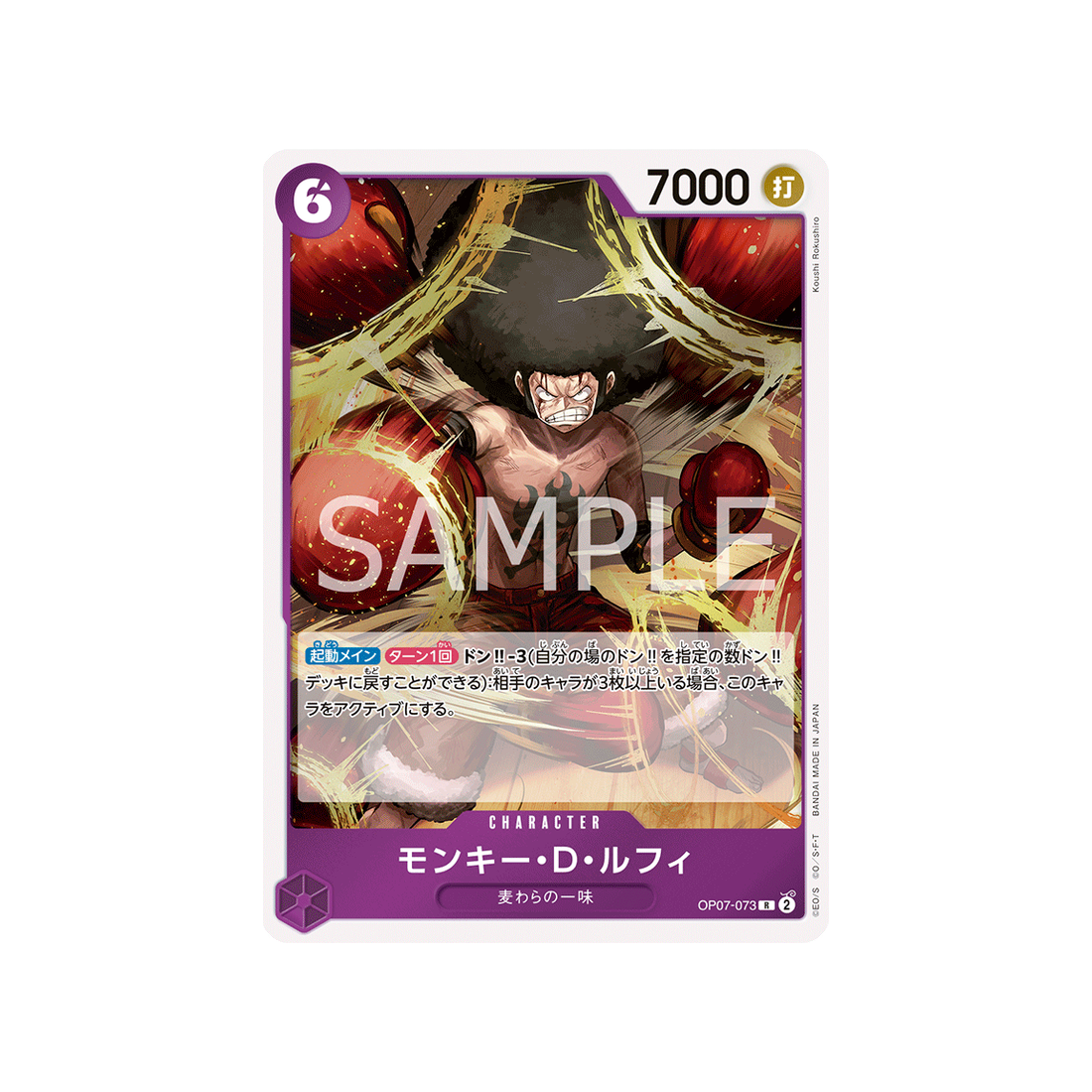 Si tu cherches une carte qui peut s'adapter à toutes les situations, ne cherchez pas plus loin que la carte OP07-073! Avec un coût de 6 'Don!', une puissance Frappe de 7000 points et de couleur Violet, la carte Character Monkey.D.Luffy est un choix fiable pour les joueurs de tous niveaux.