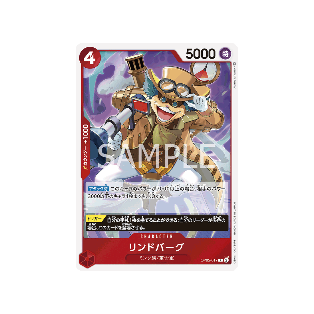 Avec un coût de 4 'Don!', une puissance de 5000 points, ainsi qu'une valeur de contre de 1000 et une attaque de type Spécial, la carte Character Lindbergh est un must-have pour tout fan de One Piece qui se respecte.
