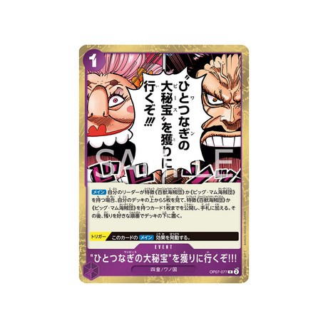 De €1,20Prix unitaire /IndisponibleStock faible (17 unités)Carte One Piece 500 Years In The Future OP07-077 : We're Going to Claim the One Piece!!!