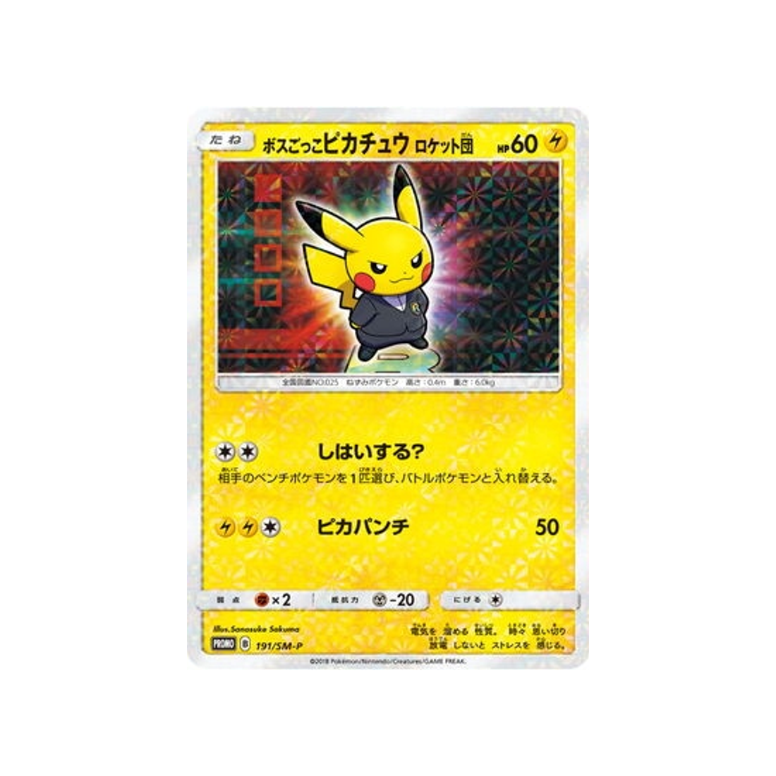 Carte Pokémon Carte Promo Soleil et Lune SM-P 191/SM-P : Pretend Boss Pikachu - Team Rocket