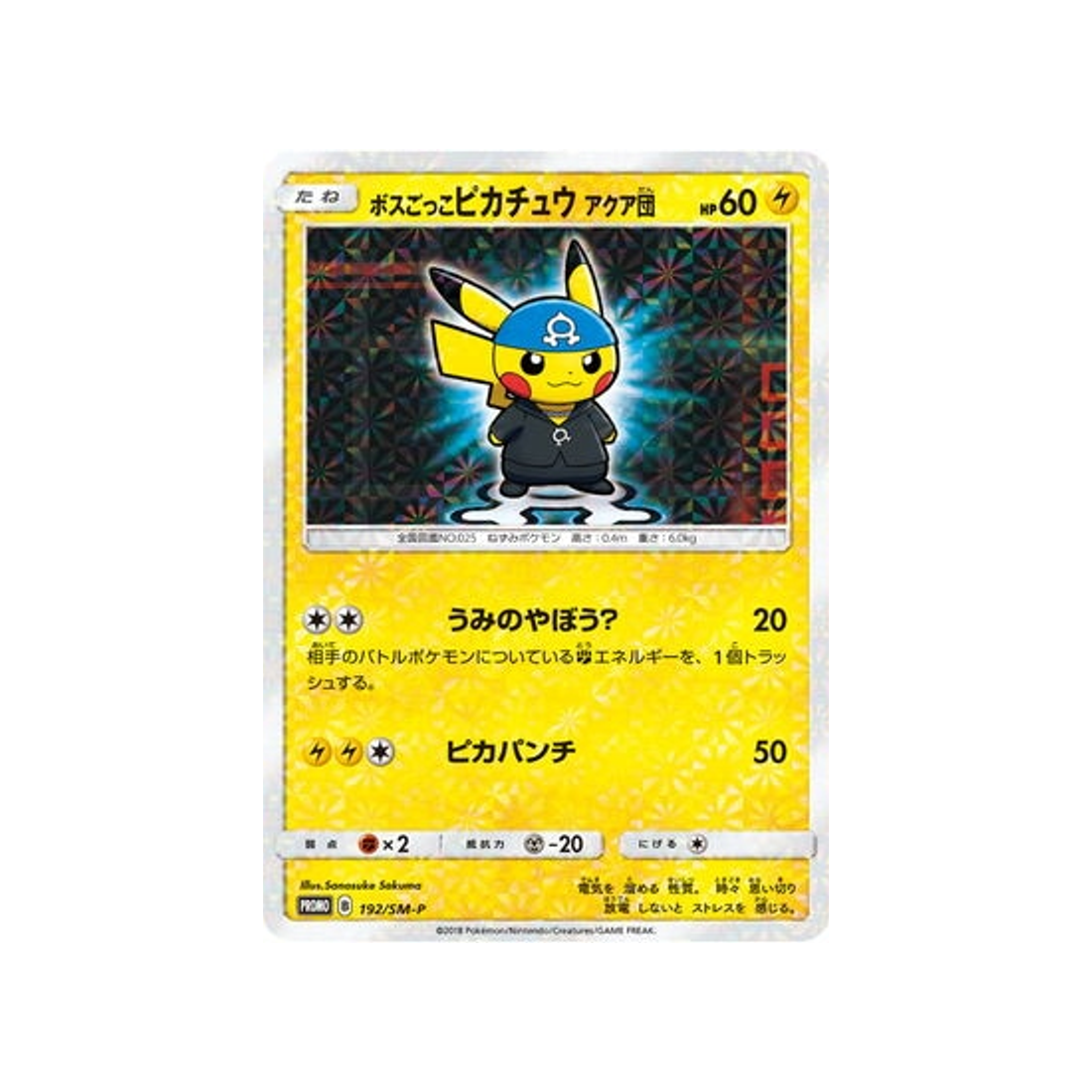 La Carte Numéro 192/SM-P : Pretend Boss Pikachu - Team Aqua de la série SM-P Carte Promo Soleil et Lune !