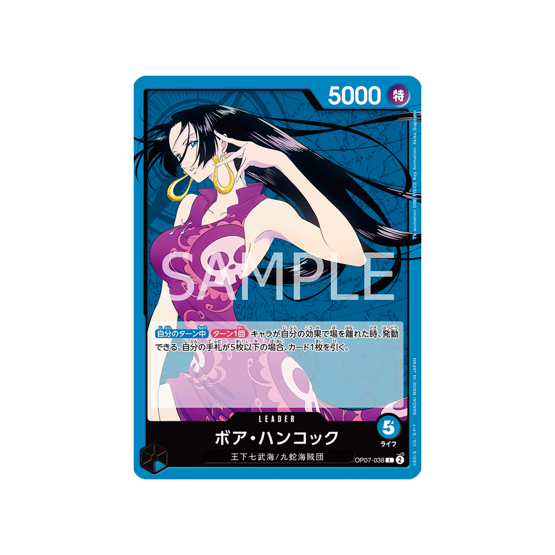 Préparez-vous à affronter tous les défis avec la magnifique carte Leader Boa Hancock numéro 038 de la série 500 Years In The Future , une carte Leader et puissante qui fera la fierté de votre collection.