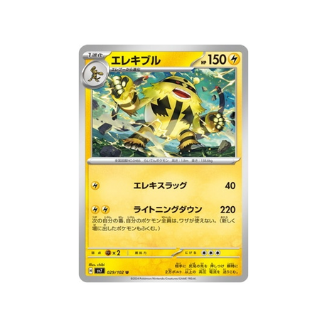 De €0,60Prix unitaire /IndisponibleStock faible (18 unités)Carte Pokémon Stella Miracle SV7 029/102 : Élekable
