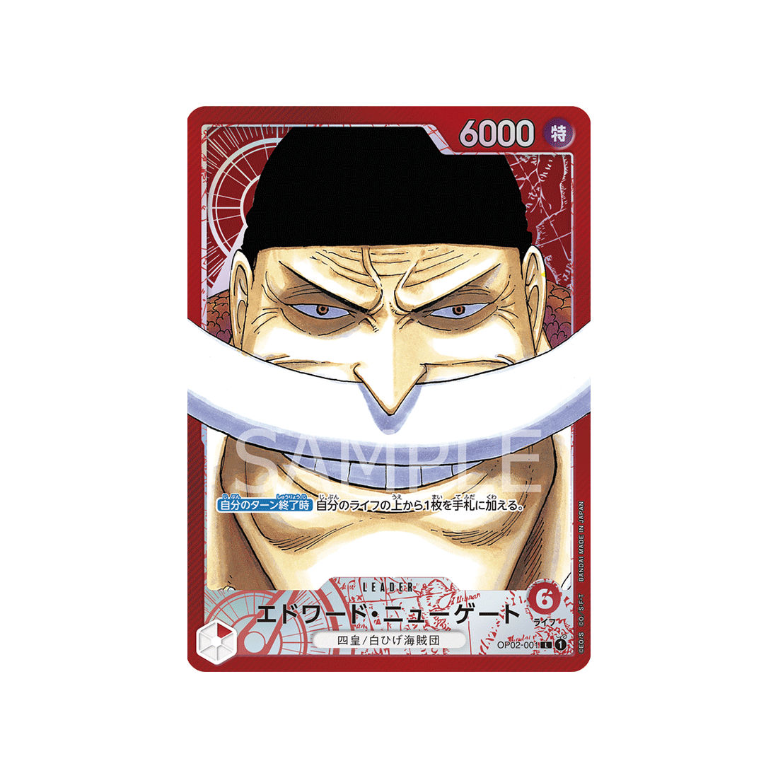 Les cartes de la famille Les Quatre Empereurs/Flotte de Barbe Blanche sont toujours très prisées par les collectionneurs, et la carte Leader Edward Newgate Numéro 001 de la série Paramount War ne fait pas exception.