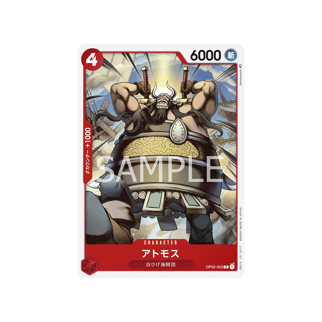 Les cartes de la famille Flotte de Barbe Blanche sont toujours très prisées par les collectionneurs, et la carte Commune Atmos Numéro 003 de la série Paramount War ne fait pas exception.