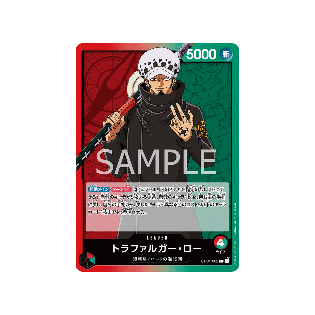 Avec ses 4 points de vie, une puissance de 5000 points et une attaque de type Coupe, la carte Leader Trafalgar Law est un must-have pour tout fan de One Piece qui se respecte.