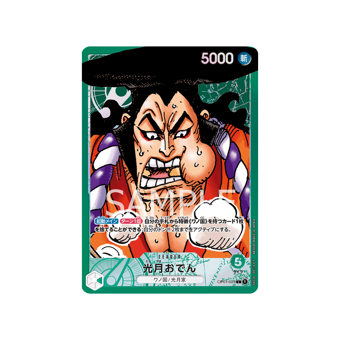 Avec ses 5 points de vie, une puissance de 5000 points et une attaque de type Coupe, la carte Leader Kozuki Oden est un must-have pour tout fan de One Piece qui se respecte.