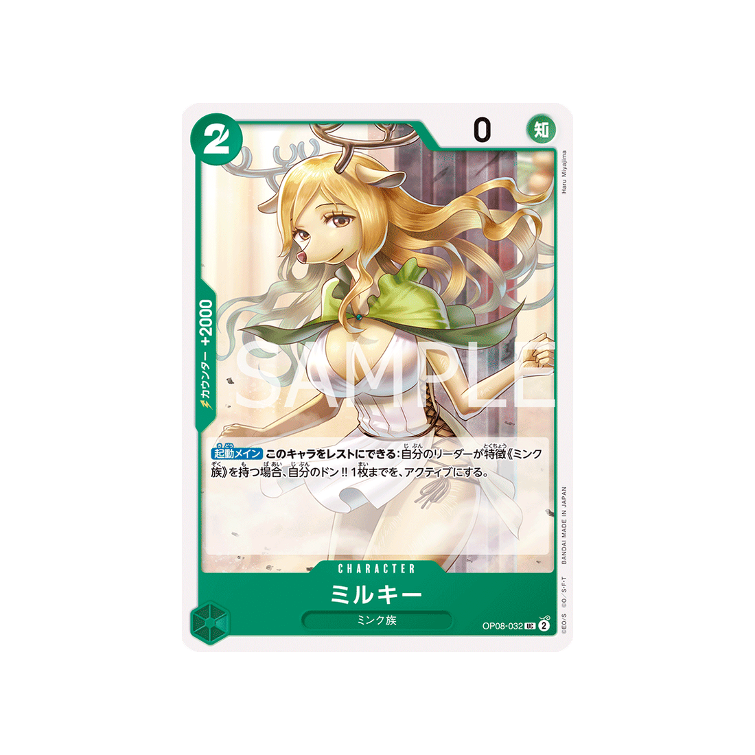 Ajoutez la carte Character Milky à votre collection One Piece dès maintenant ! Avec sa rareté UC , cette carte de la série OP08 Two Legends est un véritable bijou pour les fans de la famille Minks.