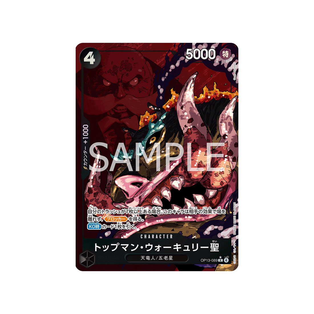 Les cartes de la famille Celestial Dragons/Five Elders sont toujours très prisées par les collectionneurs, et la carte Rare St. Topman Warcury Numéro OP13-089 de la série Carrying on His Will ne fait pas exception.