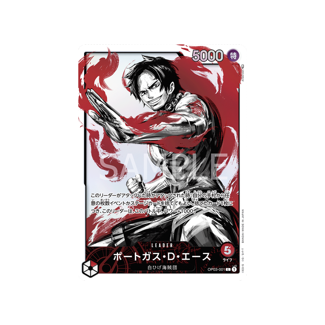 Le Leader est une carte indispensable dans tout deck qui se respecte ! Et Portgas D. Ace sera ton allié le plus précieux : de couleur Rouge et avec l'attribut Spécial, il fera des ravages via ses 5 points de vie et sa puissance de 5000 points!