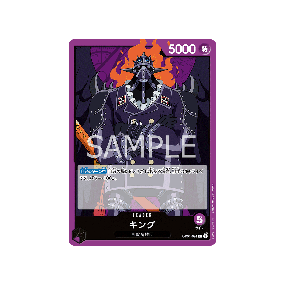 Avec ses 5 points de vie, une puissance de 5000 points et une attaque de type Spécial, la carte Leader King est un must-have pour tout fan de One Piece qui se respecte.