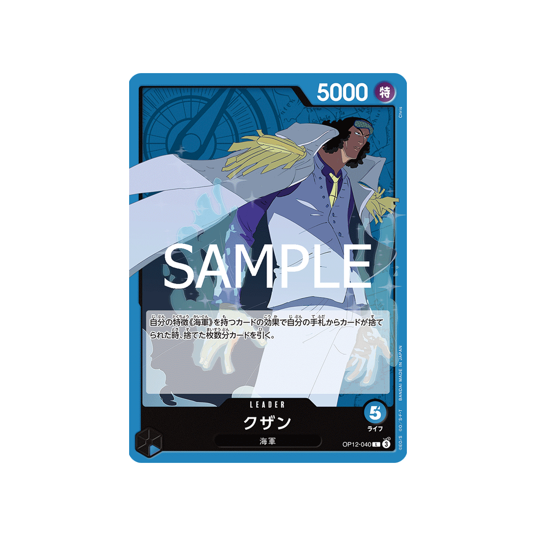 Le type Leader est une carte indispensable dans tout deck qui se respecte ! Et Kuzan sera ton allié le plus précieux : de couleur Bleu et avec l'attribut Spécial, il fera des ravages via ses 5 points de vie et sa puissance de 5000 points, ainsi qu'une valeur de contre de -!