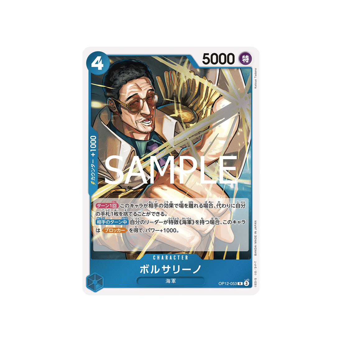 Avec un coût de 4 'Don!', une puissance de 5000 points, ainsi qu'une valeur de contre de 1000 et une attaque de type Spécial, la carte Character Borsalino est un must-have pour tout fan de One Piece qui se respecte.