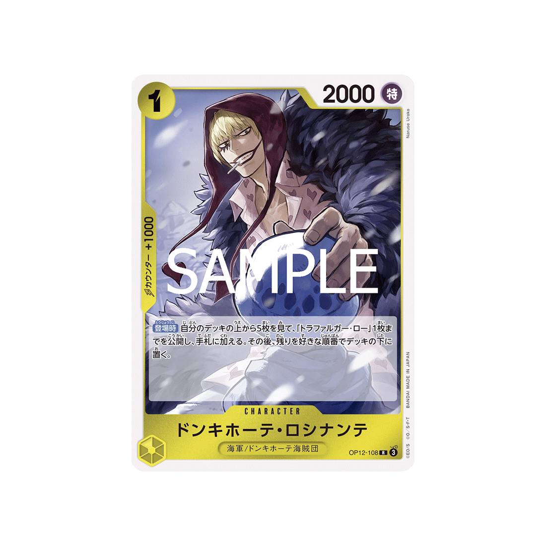 Deviens le maître des mers avec la carte numéro OP12-108 : Donquixote Rosinante, une carte de collection indispensable pour tout fan de One Piece.