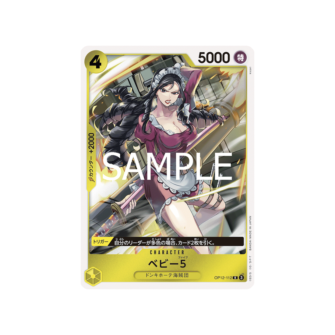Les cartes de la famille Equipage de Don Quichote sont toujours très prisées par les collectionneurs, et la carte Rare Baby 5 Numéro OP12-112 de la série Legacy of the Master ne fait pas exception.