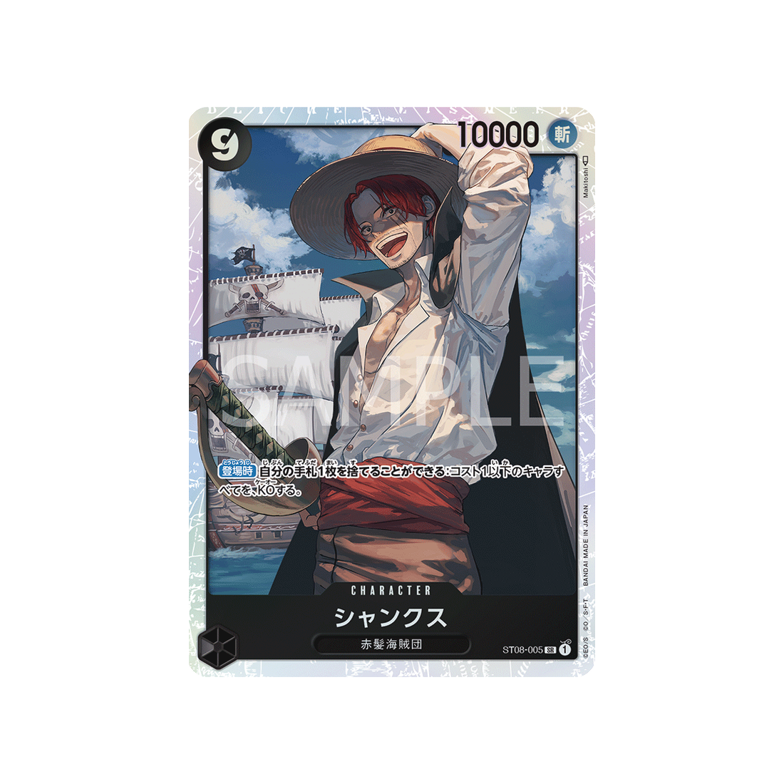 Ajoutez la carte Character Shanks à votre collection One Piece dès maintenant ! Avec sa rareté SR , cette carte de la série ST08 Side Monkey.d.luffy est un véritable bijou pour les fans de la famille Equipage du Roux.