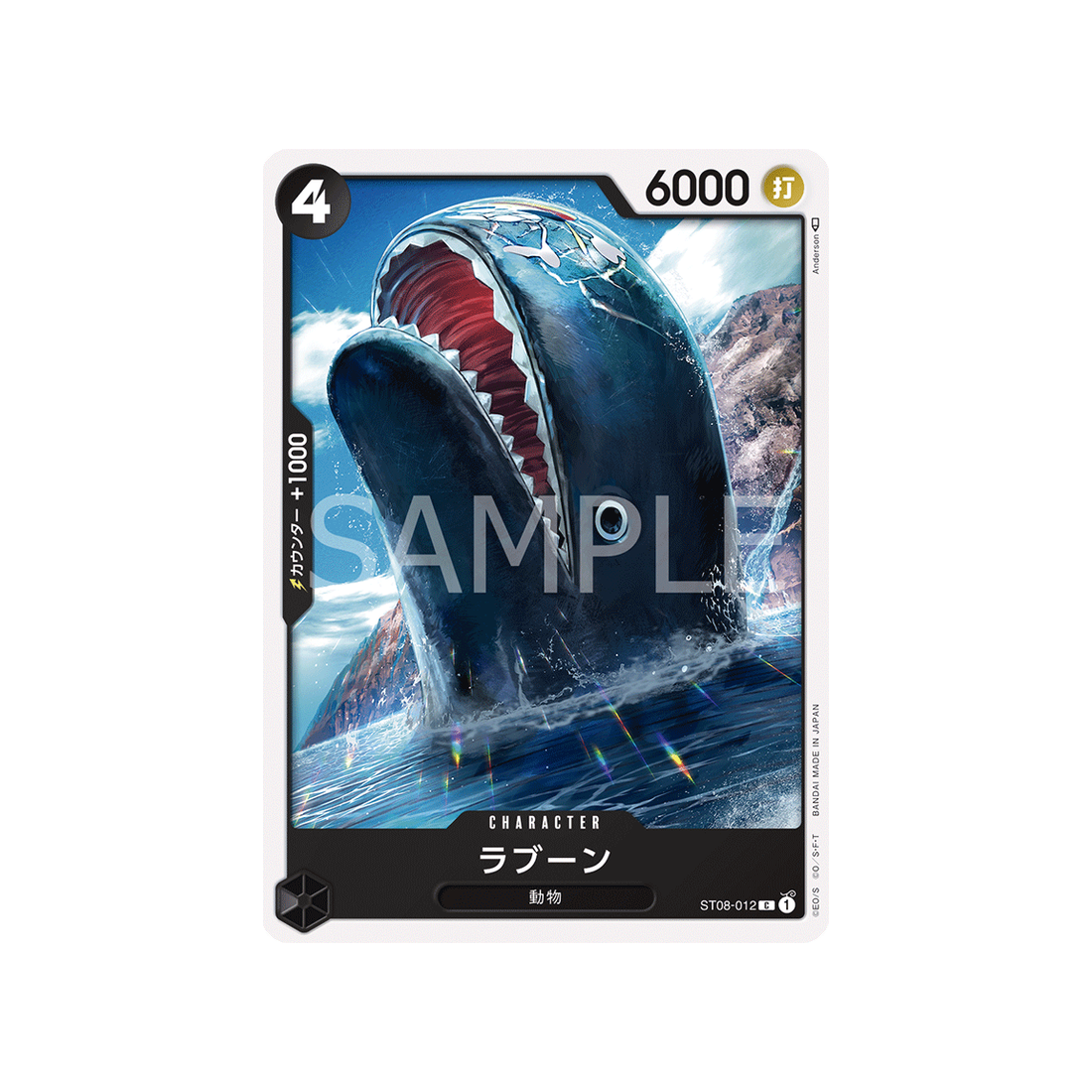 Ajoutez la carte Character Laboon à votre collection One Piece dès maintenant ! Avec sa rareté C , cette carte de la série ST08 Side Monkey.d.luffy est un véritable bijou pour les fans de la famille Animal.