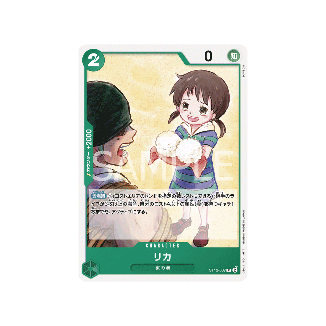 Que tu sois novice ou joueur expérimenté, la carte ST12-007 est un choix fiable. Avec un coût de 2, ainsi qu'une valeur de contre de 2000 et une attaque de type Sagesse d'une puissance de -0 points, elle peut s'adapter à toutes les situations. Un incontournable pour tout duelliste One Piece TCG !