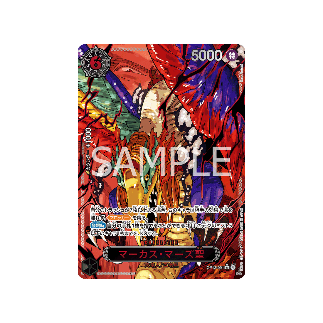 Deviens le maître des mers avec la carte Rare numéro OP13-091 : St. Marcus Mars, une carte de collection dans sa version Parallèle 2indispensable pour tout fan de One Piece.
