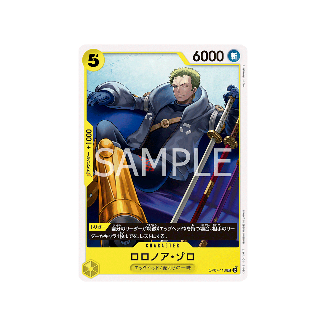 Les cartes de la famille Egghead/Equipage du Chapeau de Paille sont toujours très prisées par les collectionneurs, et la carte Peu Commune Roronoa Zoro Numéro 113 de la série 500 Years In The Future ne fait pas exception.