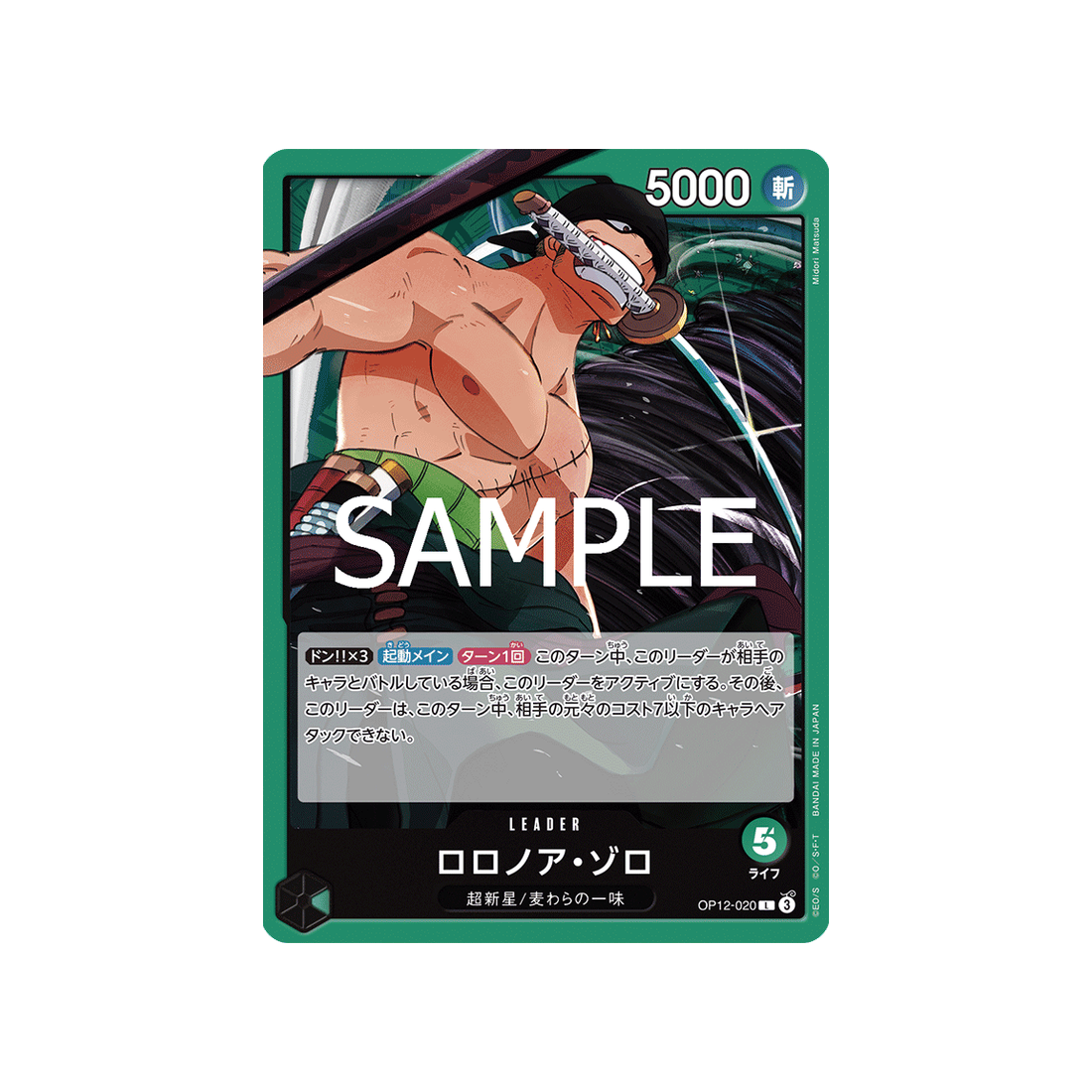 Le type Leader est une carte indispensable dans tout deck qui se respecte ! Et Roronoa Zoro sera ton allié le plus précieux : de couleur Vert et avec l'attribut Coupe, il fera des ravages via ses 5 points de vie et sa puissance de 5000 points, ainsi qu'une valeur de contre de -!