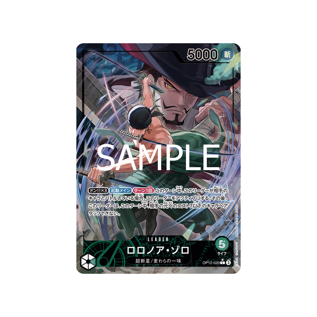 Avec ses 5 points de vie, une puissance de 5000 points, ainsi qu'une valeur de contre de - et une attaque de type Coupe, la carte Leader Roronoa Zoro est un must-have pour tout fan de One Piece qui se respecte.