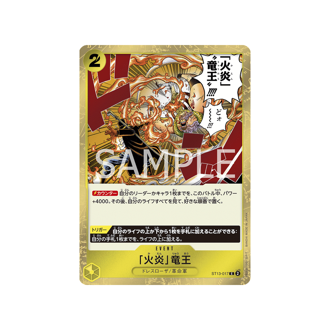 Change le cours de la partie avec la carte Event : Flame Dragon King qui a un coût de 2 'Don!'. Nous t'avons traduit son effet plus bas dans la description !