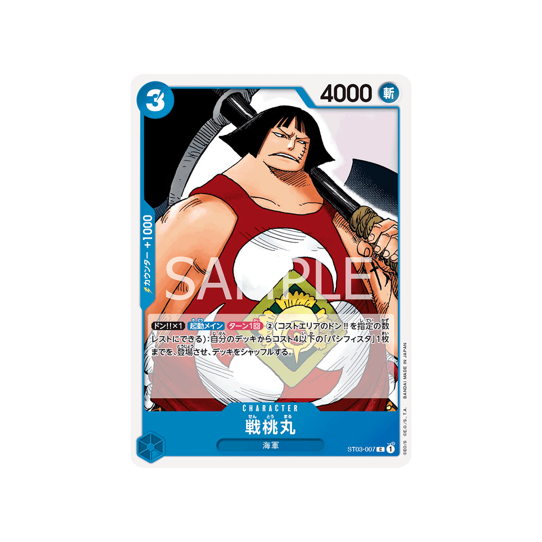 Avec un coût de 3 'Don!', une puissance de 4000 points, ainsi qu'une valeur de contre de 1000 et une attaque de type Coupe, la carte Character Sentomaru est un must-have pour tout fan de One Piece qui se respecte.