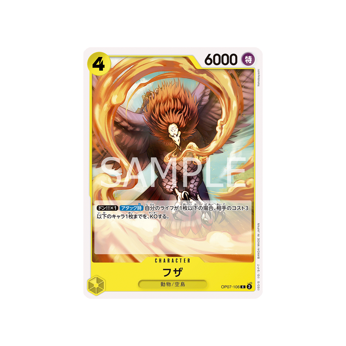 Avec un coût de 4 'Don!', une puissance de 6000 points et une attaque de type Spécial, la carte Character Fuza est un must-have pour tout fan de One Piece qui se respecte.
